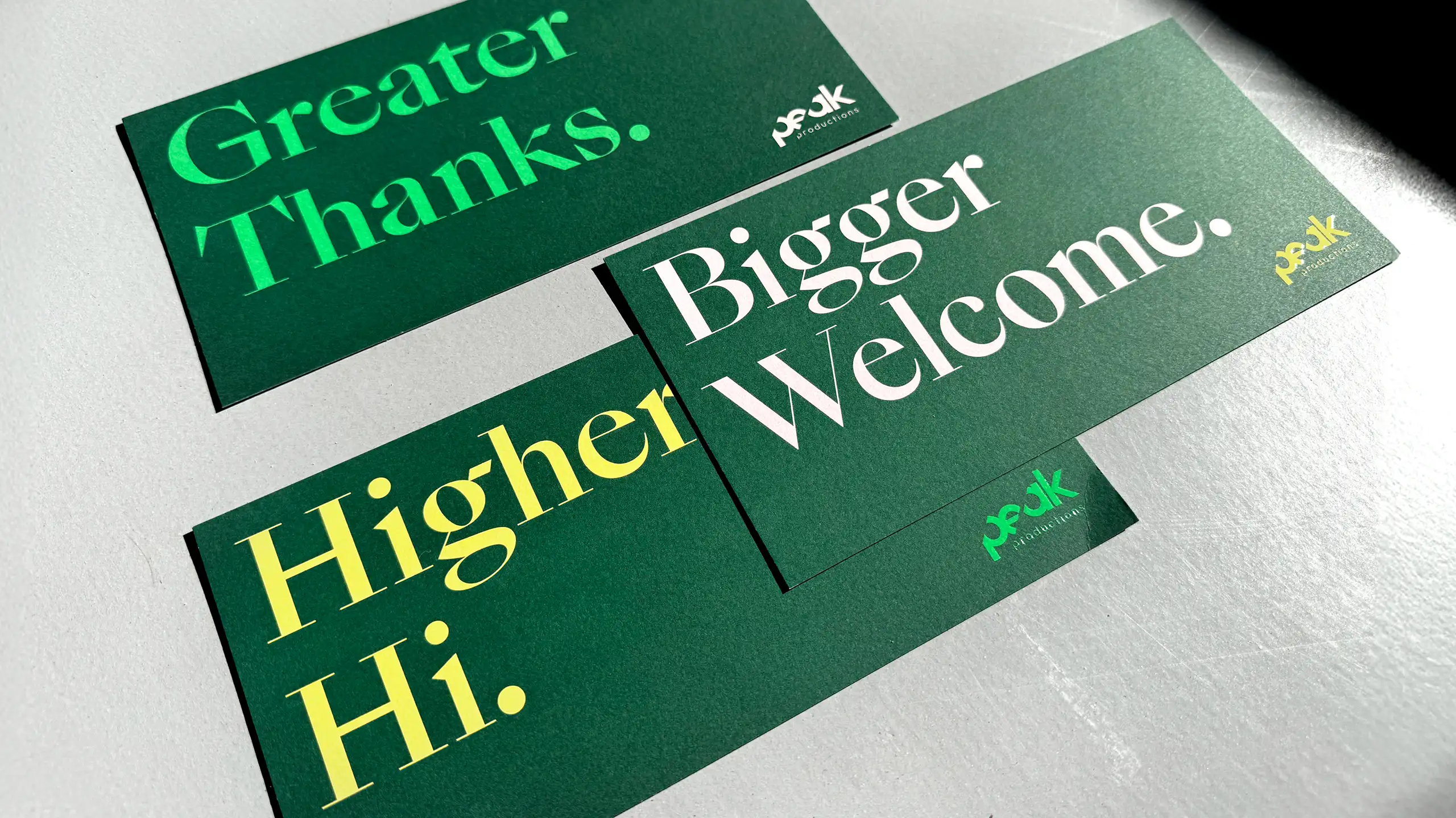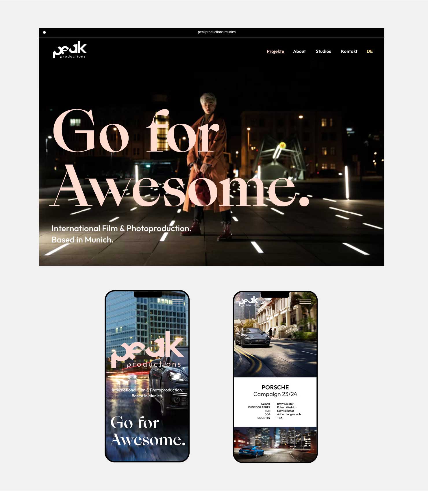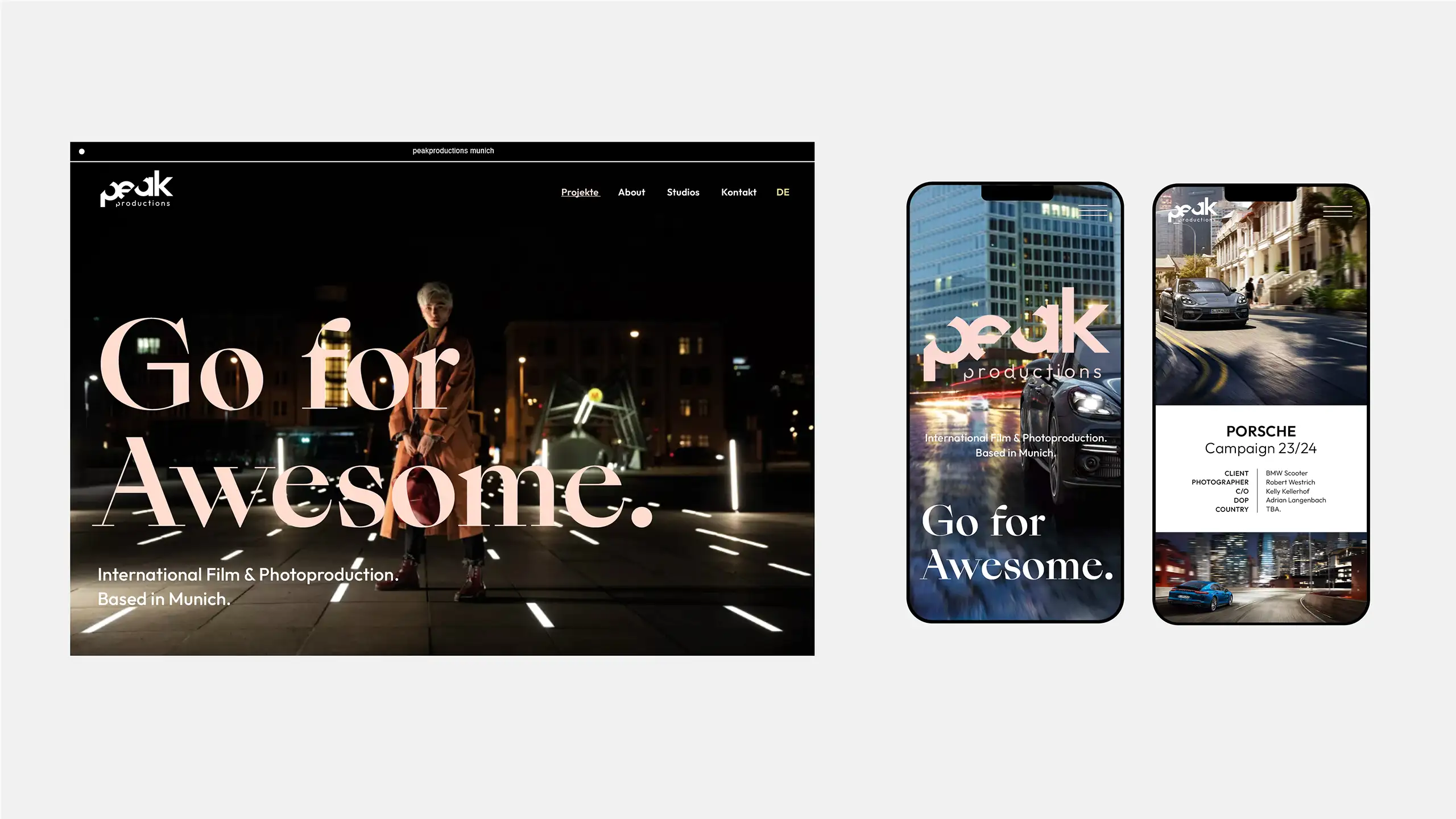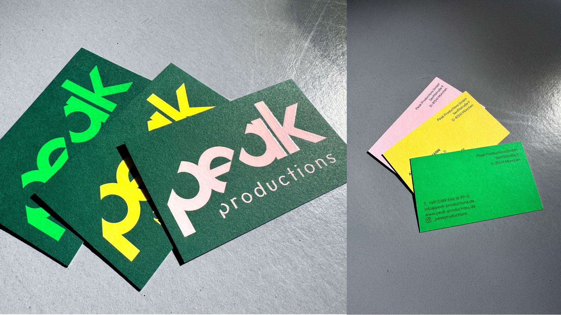 Für Peak Productions, Film- und Fotoproduktion aus München, entstand ein neues Brand Design, das den hohen Anspruch an Qualität, Kreativität und Teamspirit visuell auf den Punkt bringt. Das Logo – bold, dynamisch – spiegelt die Haltung des Unternehmens wider: immer auf dem höchsten Level. Frische Farben und ein klarer typografischer Aufbau unterstreichen den Anspruch, filmische Exzellenz mit Leidenschaft und Präzision zu verbinden.