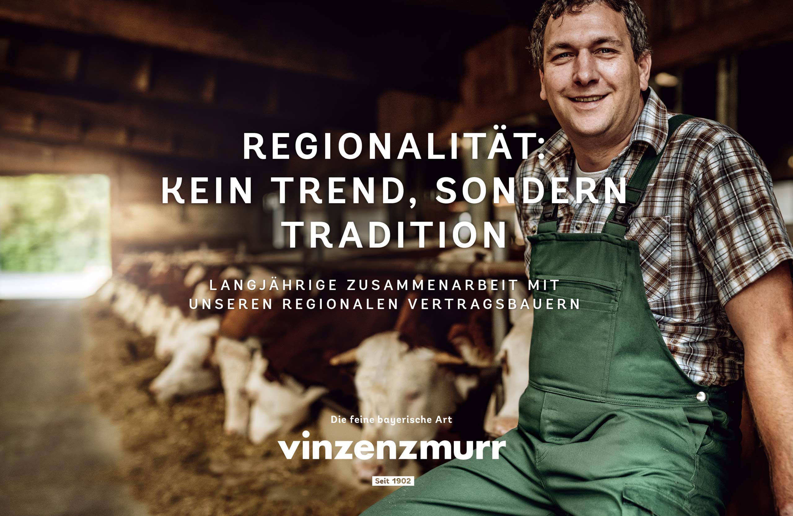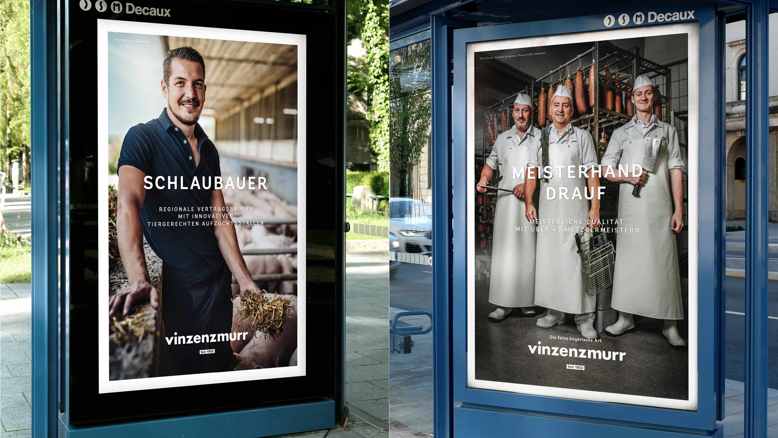 Die münchener Großmetzgerei Vinzenzmurr steht für Qualität, Leidenschaft, Handwerk und Regionalität. Unter dem Motto „Die feine bayerische Art“ bewirbt Vinzenmurr mit Plakaten, Broschüren und zahlreichen POS-Werbemitteln die täglich hausgemachten Produkte, die in den rund 240 Filialen verkauft werden. Im Mittelpunkt der Kampagne stehen die Landwirte, Mitarbeiter und Produkte.